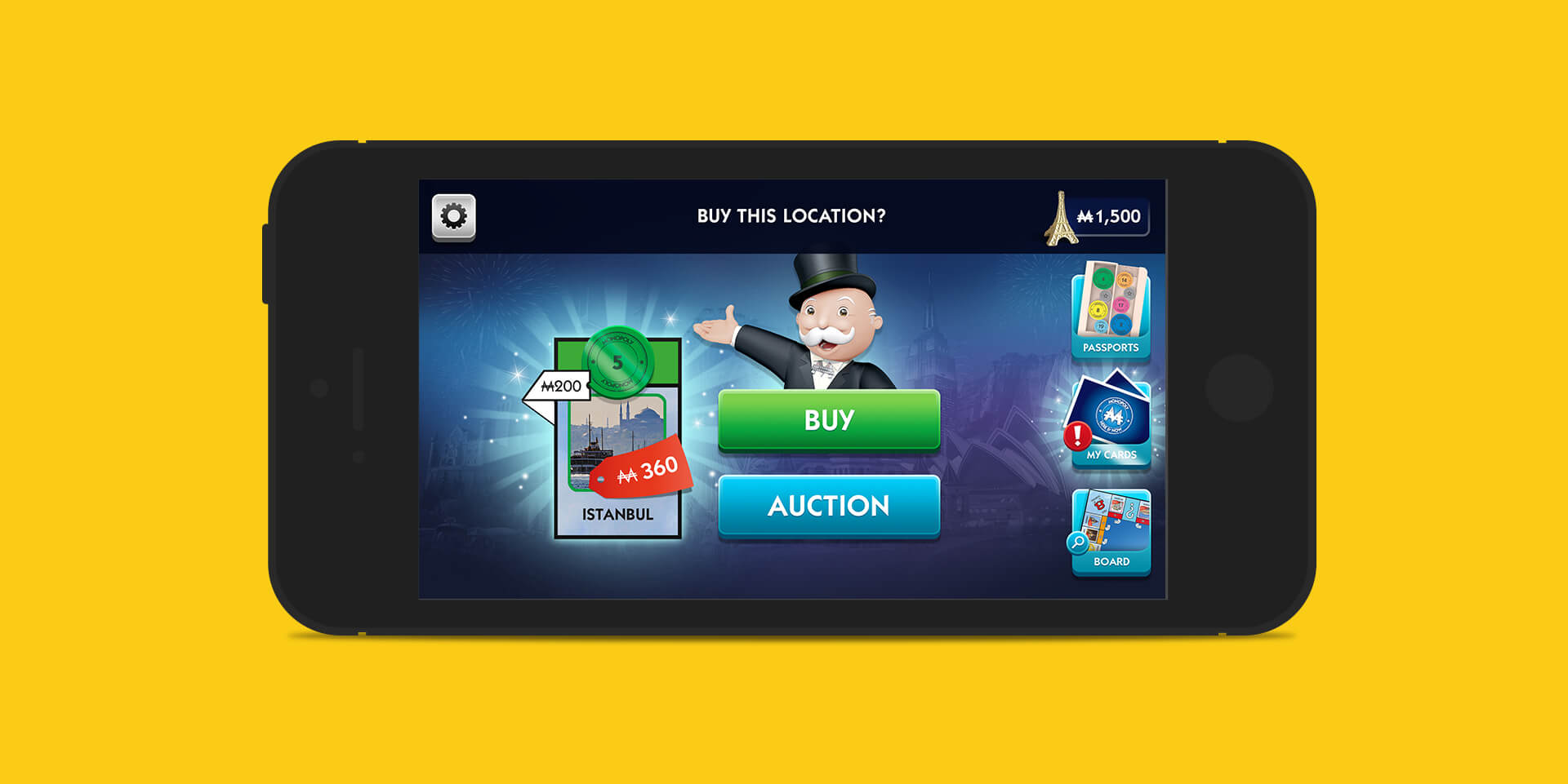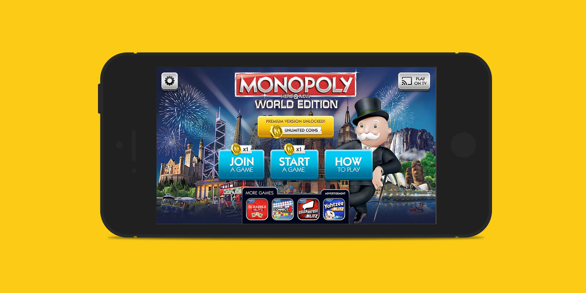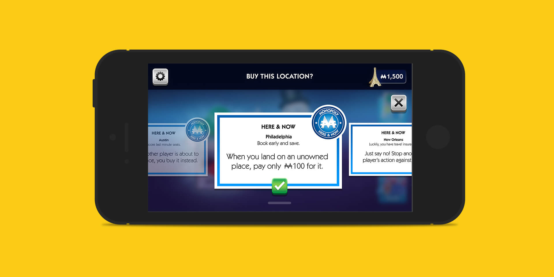 Hasbro wanted us to take their classic Monopoly board game, and convert it into a digital experience. The goal of the project was to adapt their Here & Now World Edition and build an experience where users can play with family and friends on their smartphones and tablets. The adaptation also allows users to connect to their Google Chromecast service, and play on the big screens. From a design perspective, we wanted to make sure that the UI and Art worked seamlessly regardless if you were playing solely on your smartphone, or if you were casting it onto the TV screen.